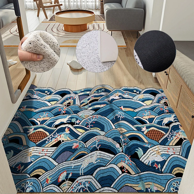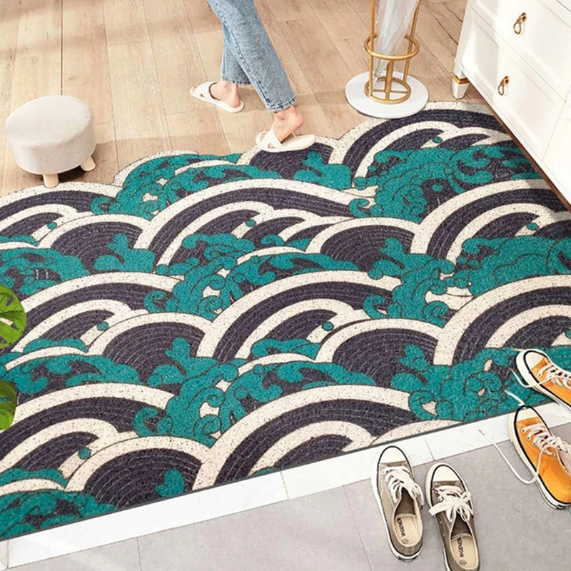 Коврик дверной из ПВХ с морской волной, креативный водонепроницаемый ковер, моющийся, устойчивый к загрязнениям, для прихожей, гостиной, Нескользящие японские ковры, домашний декор
