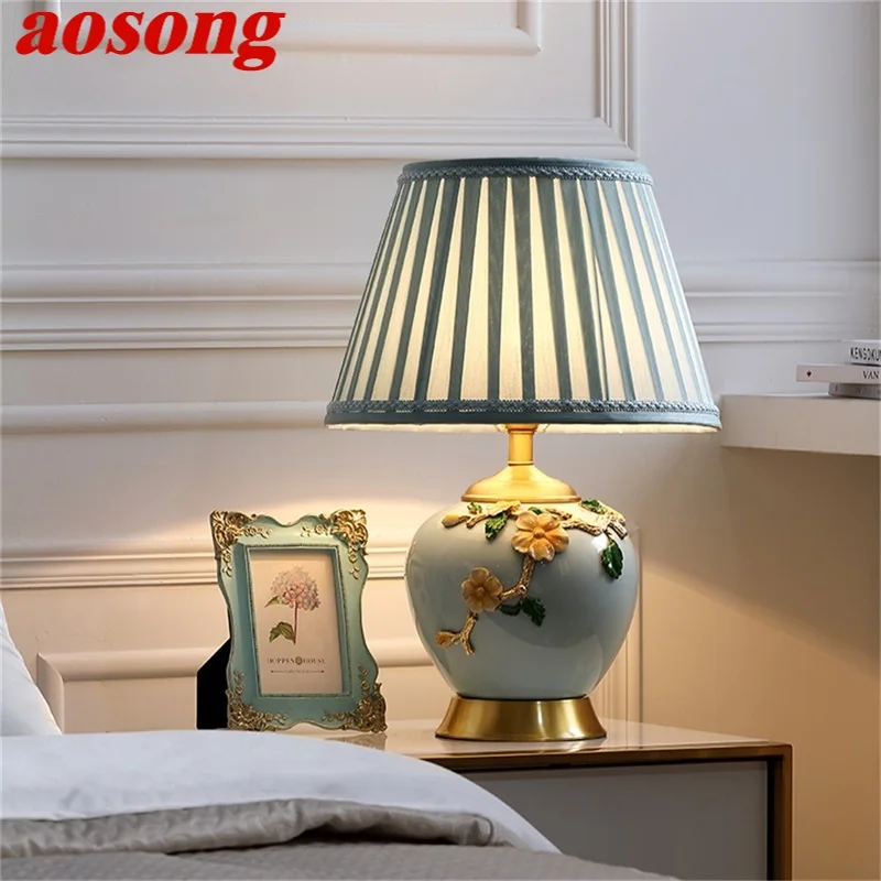 Керамическая Настольная лампа AOSONG, медная, роскошная, бледно-син...