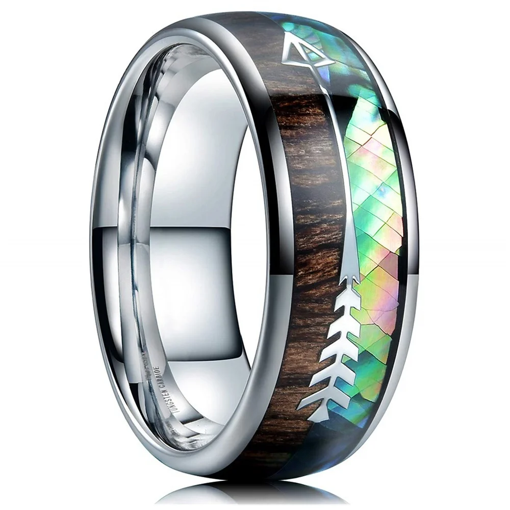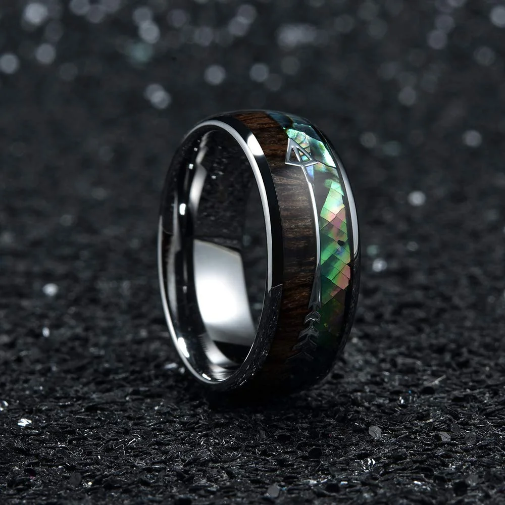 Кольцо мужскоеженское, из нержавеющей стали, с деревянными стрелками