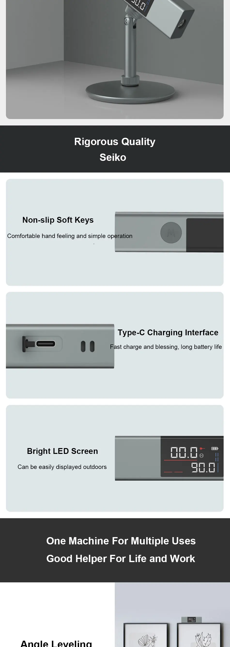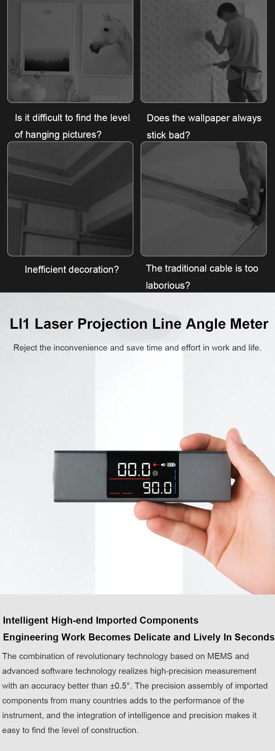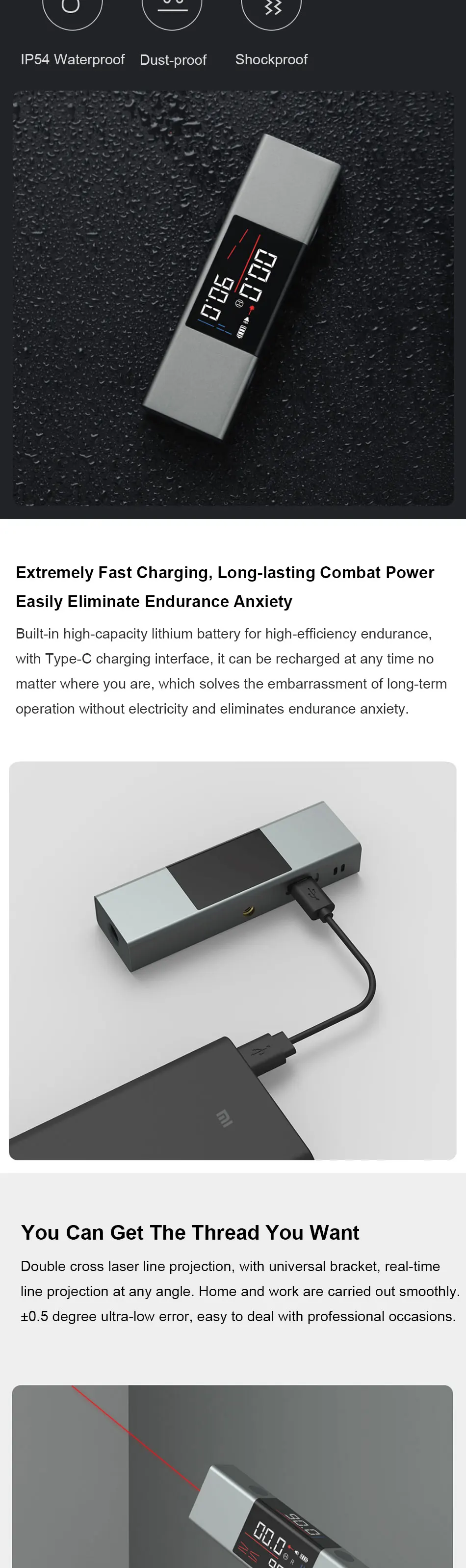 Youpin лазер угловой дальномер точность инфракрасный точное измерение в реальном времени высокое разрешение светодиодный экран Type-C Быстрая зарядка