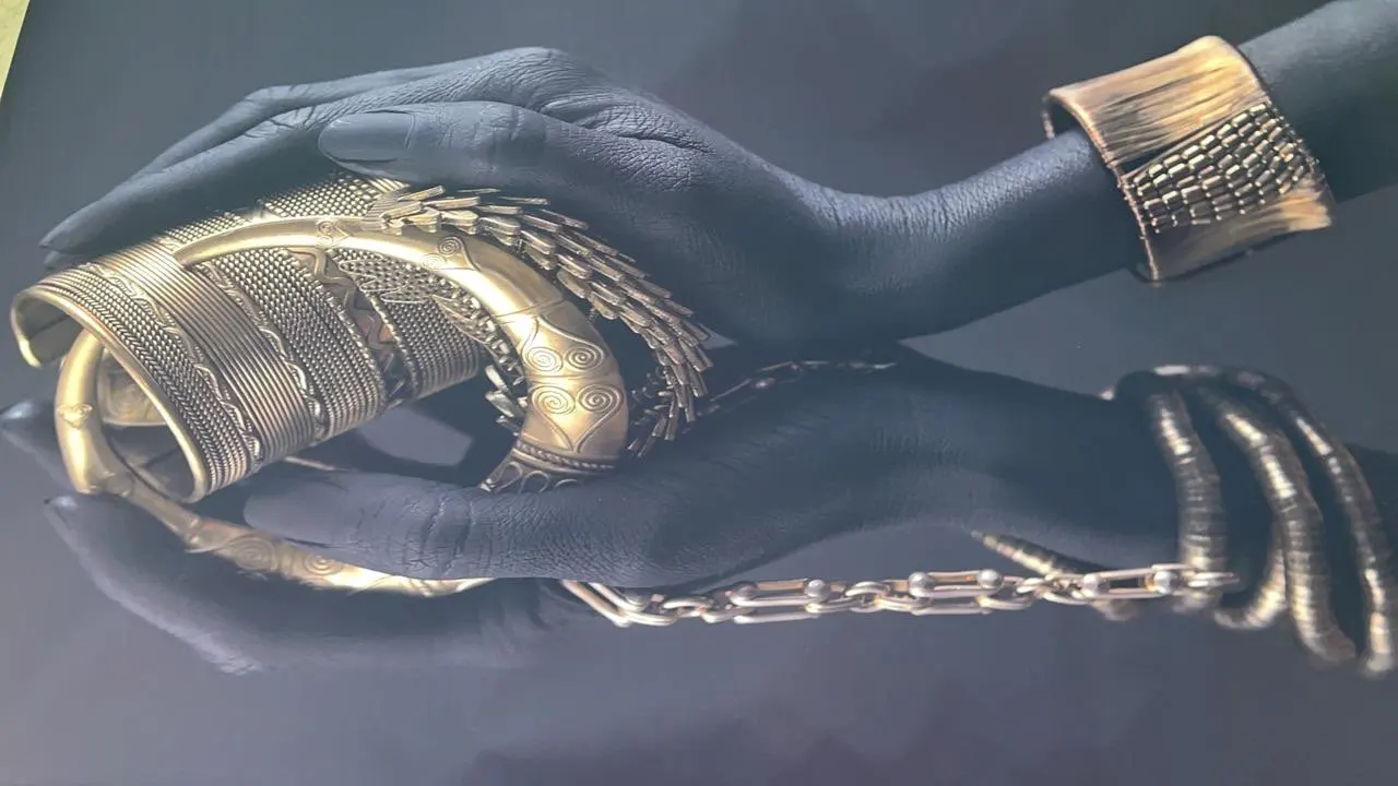 Черно-Золотая рука с золотым браслетом, картина маслом на холсте, п...