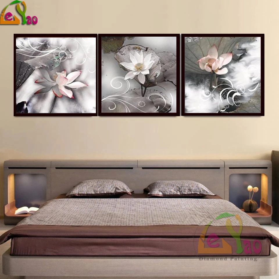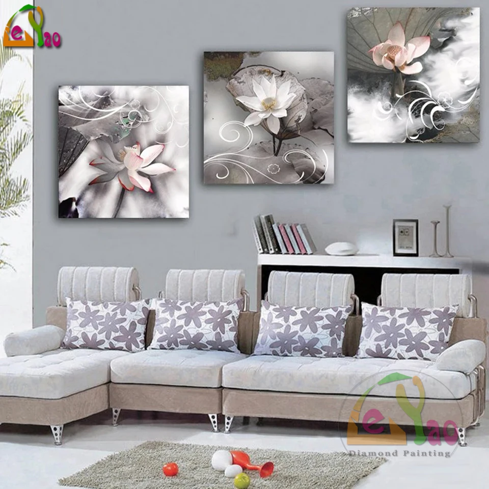 Алмазная вышивка 5d, квадратная мозаика с цветком лотоса, мозаика для украшения дома, 3 шт.