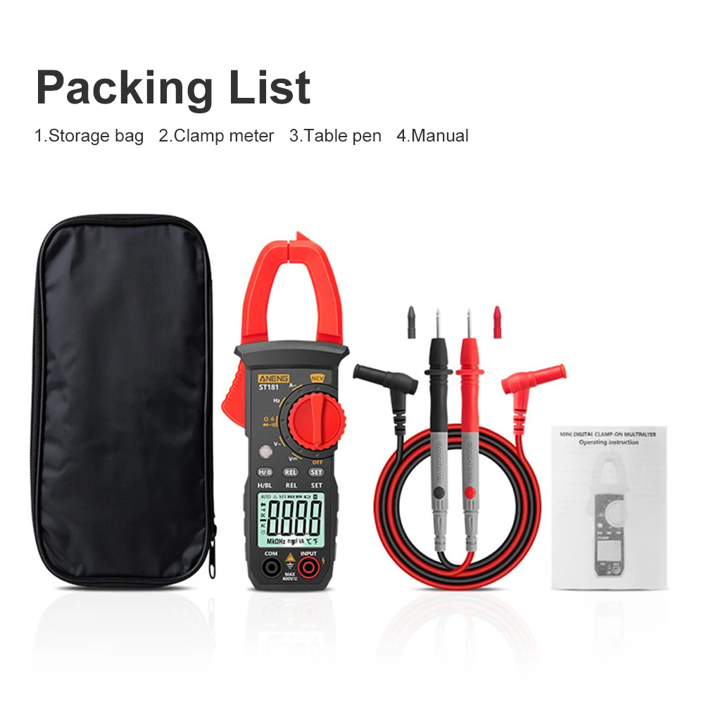 Цифровой мультиметр-зажим ANENG ST181, мультиметр постоянногопеременного тока, 4000 отсчетов, амперметр, тестер напряжения для автомобиля, тестер емкости и бесконтактного напряжения
