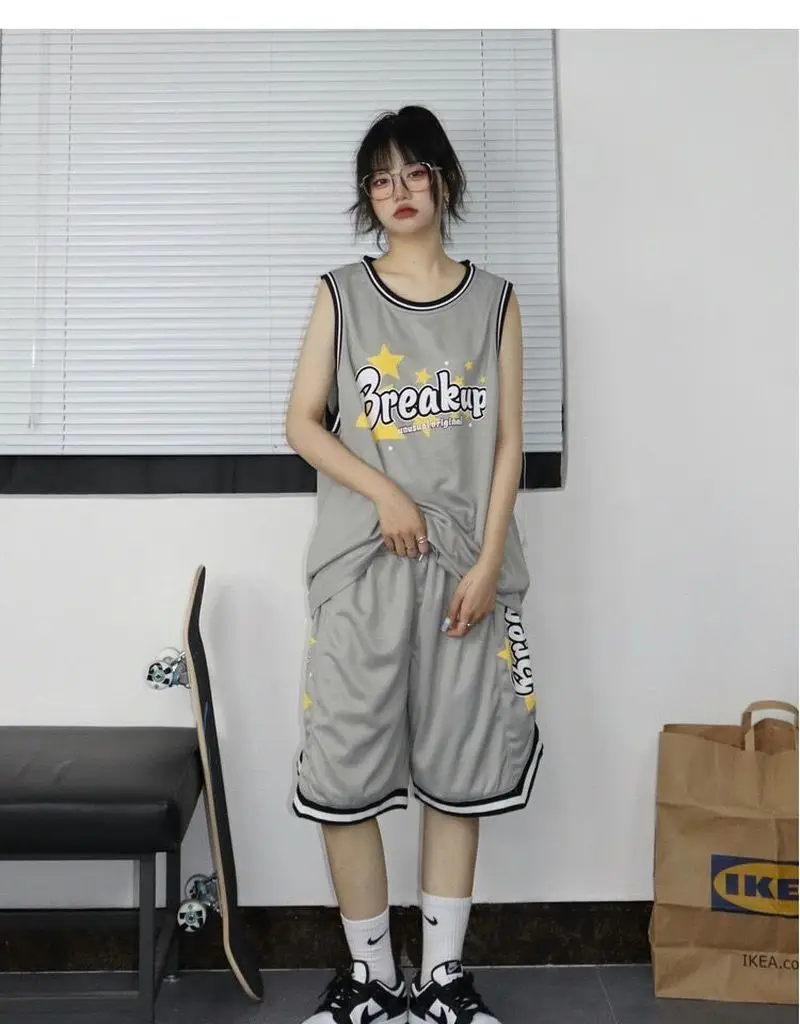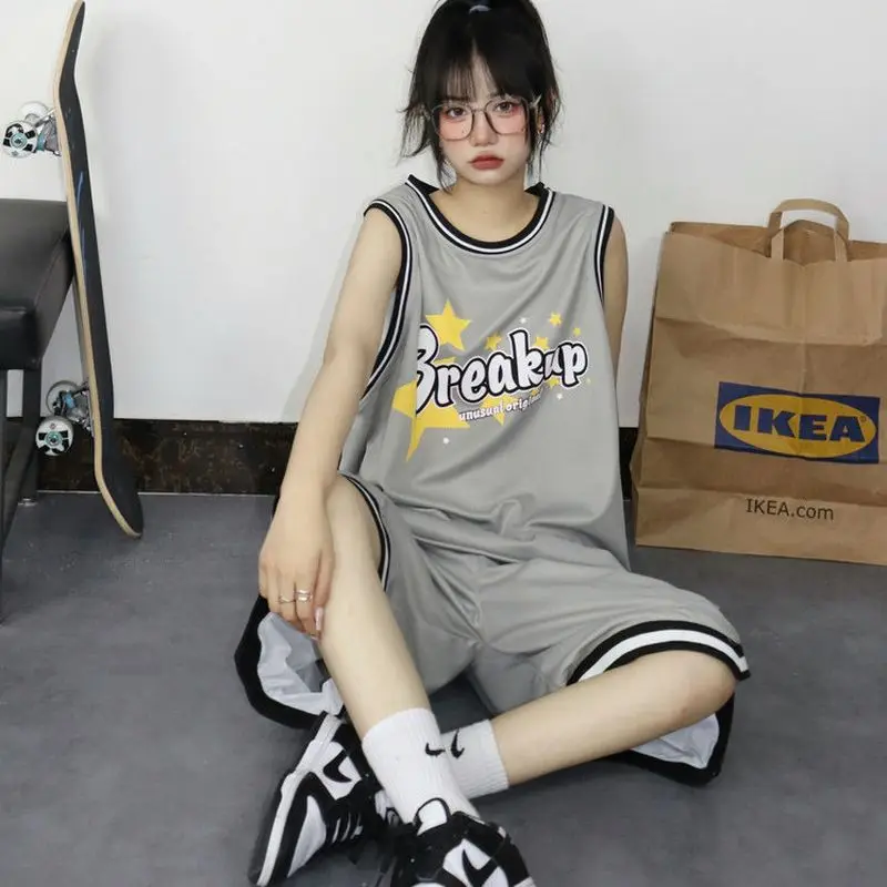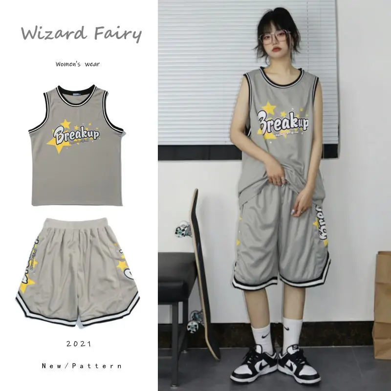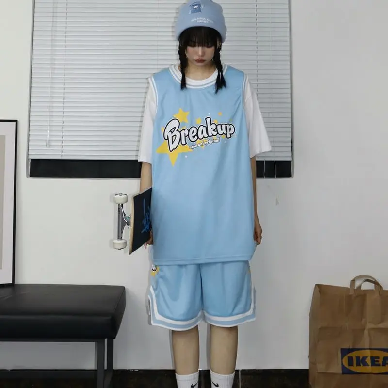 Новинка лета 2022, баскетбольный костюм униформы для мужчин и женщин, в стиле преппи, в Корейском стиле Харадзюку, спортивный комплект из двух предметов, майка и шорты