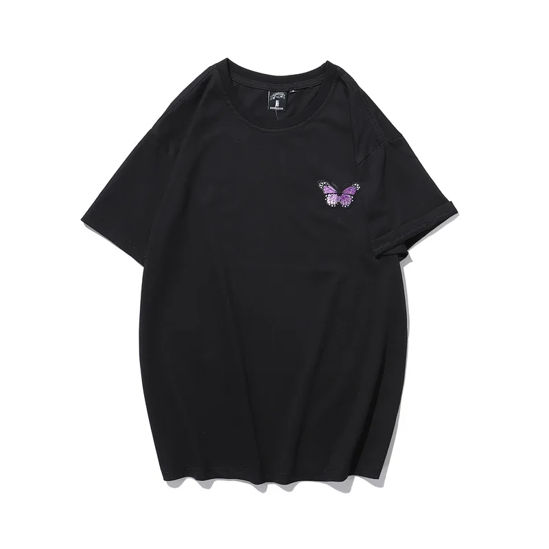 2021 Kpop футболка с вышивкой бабочки для пары для мужчин с коротким рукавом мужской корейский Повседневный Топ белые женские футболки