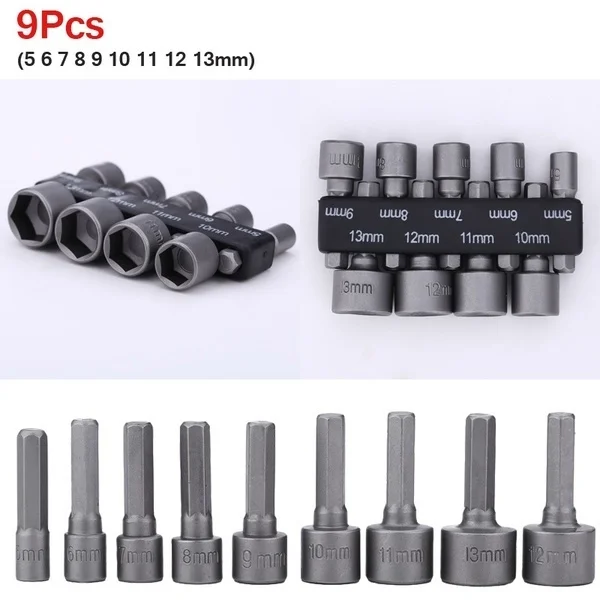 IWOWN 9 шт.компл. 5 мм-13 мм Шестигранная муфта сопла Набор отверток Набор насадок для гаек Набор насадок инструменты
