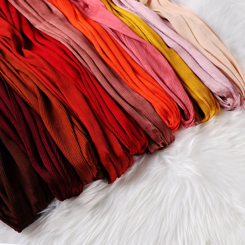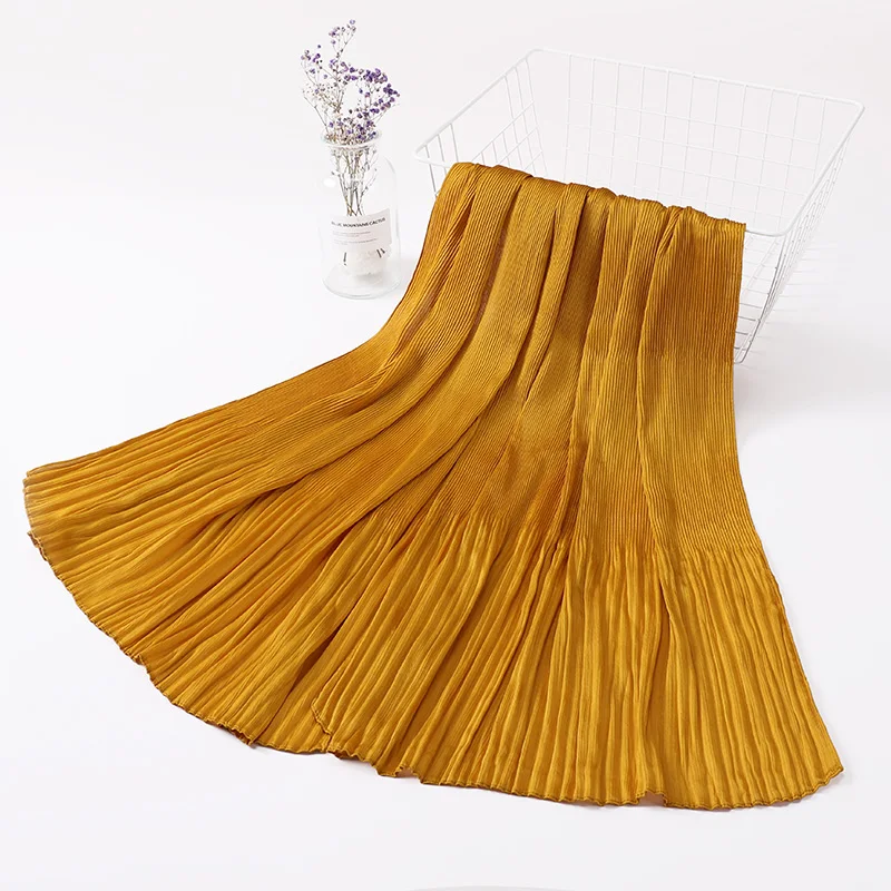 Шелковый женский плиссированный атласный шарф, хиджаб, Осень-зима, длинная Муфель для женщин, шаль, накидка, шали и повязки, бандана