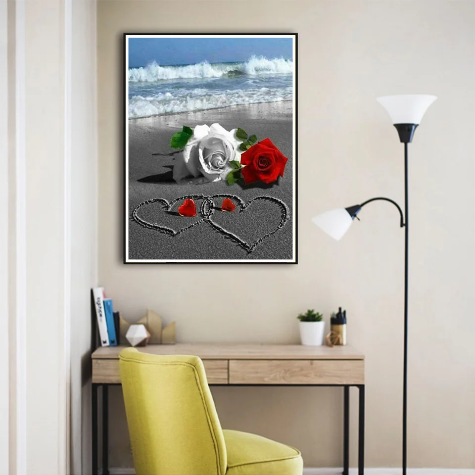 EverShine DIY алмазная живопись живописная 5D алмазная вышивка пляжная картина мозаика полная квадратная Роза Стразы домашний декор