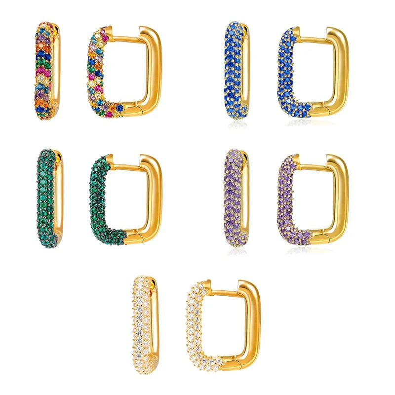 Одиночные инкрустированные серьги из циркона Геометрические Квадратные ушные пряжки модные свисающие серьги ювелирные изделия для женщин разноцветный обруч серьгиПримечание: только одна серьга