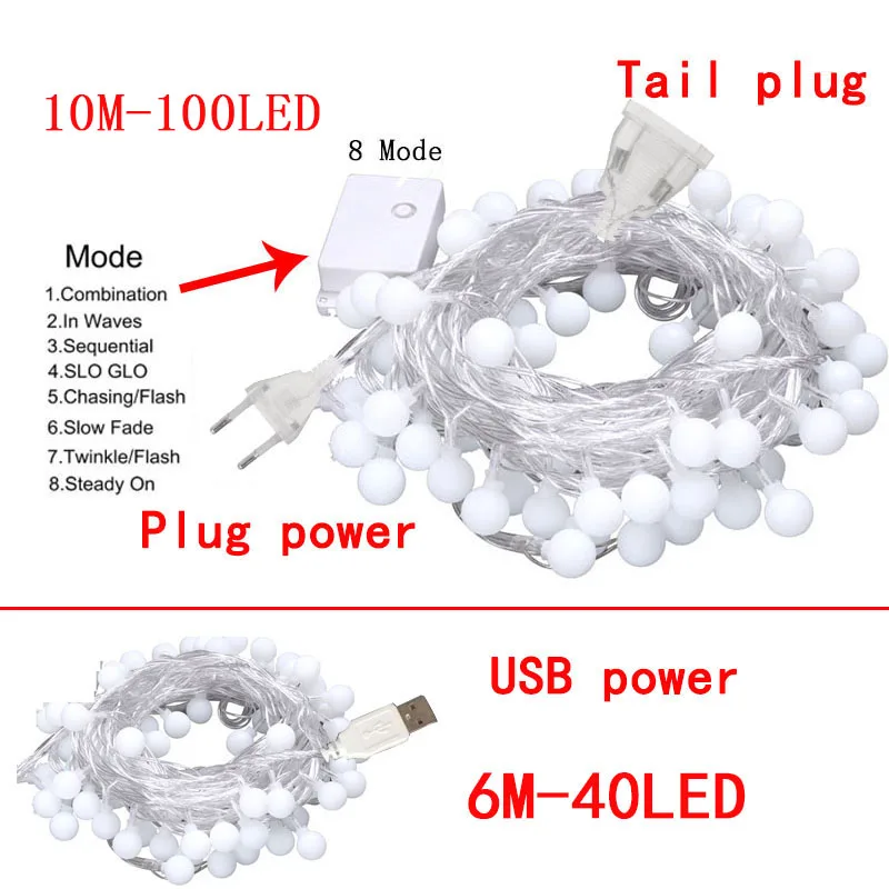 Гирлянда из светодиодных шариков, 6 м10 м, с USBна батарейках, Рожд...