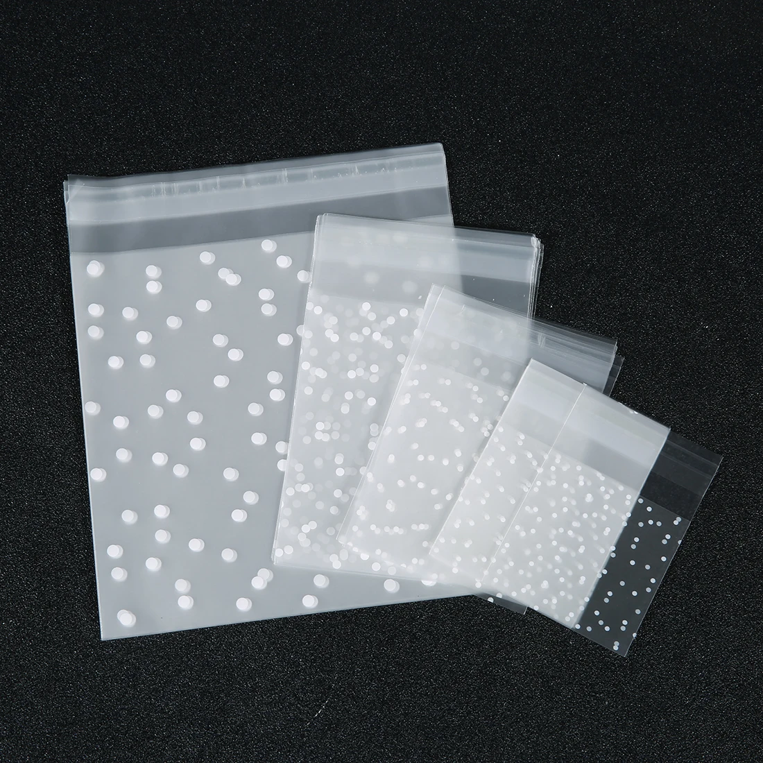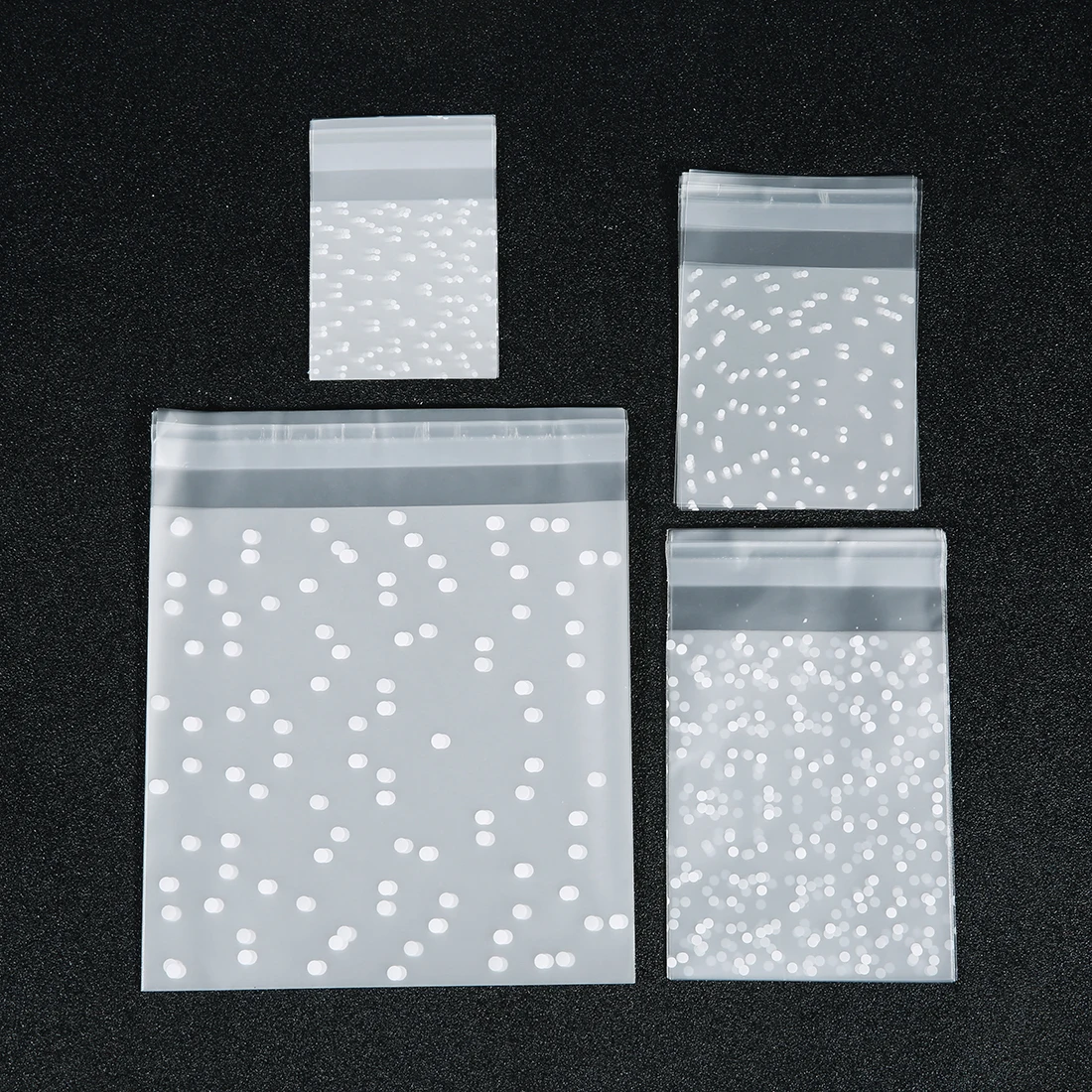100 шт.лот прозрачная матовая пластиковая сумка в белый горошек для конфет и печенья для свадьбы, Рождества, дня рождения, вечеринки, свадьбы, подарочные пакеты