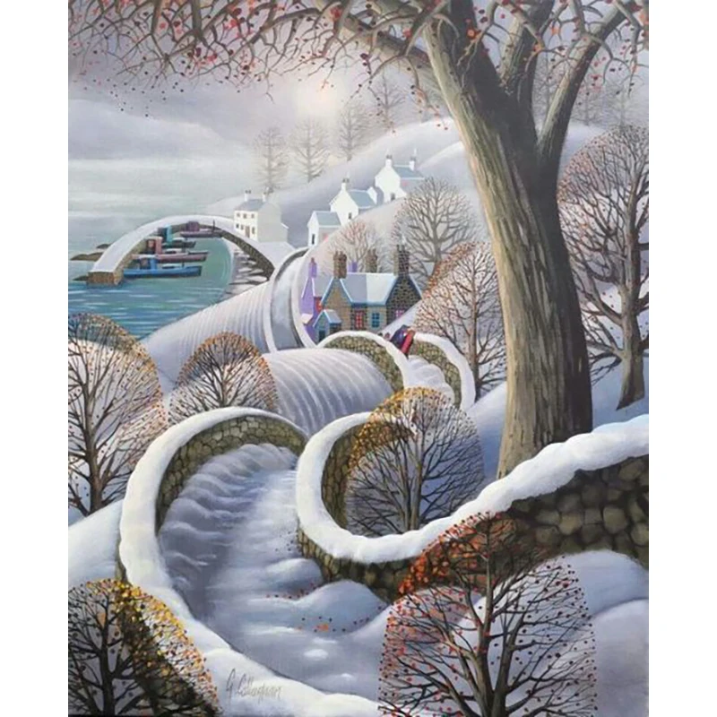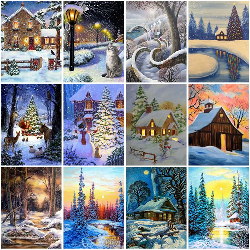 Алмазная 5d картина сделай сам, снежный пейзаж, настенное искусство, полноразмерная вышивка, зимняя мозаика, вышивка крестиком, домашний декор