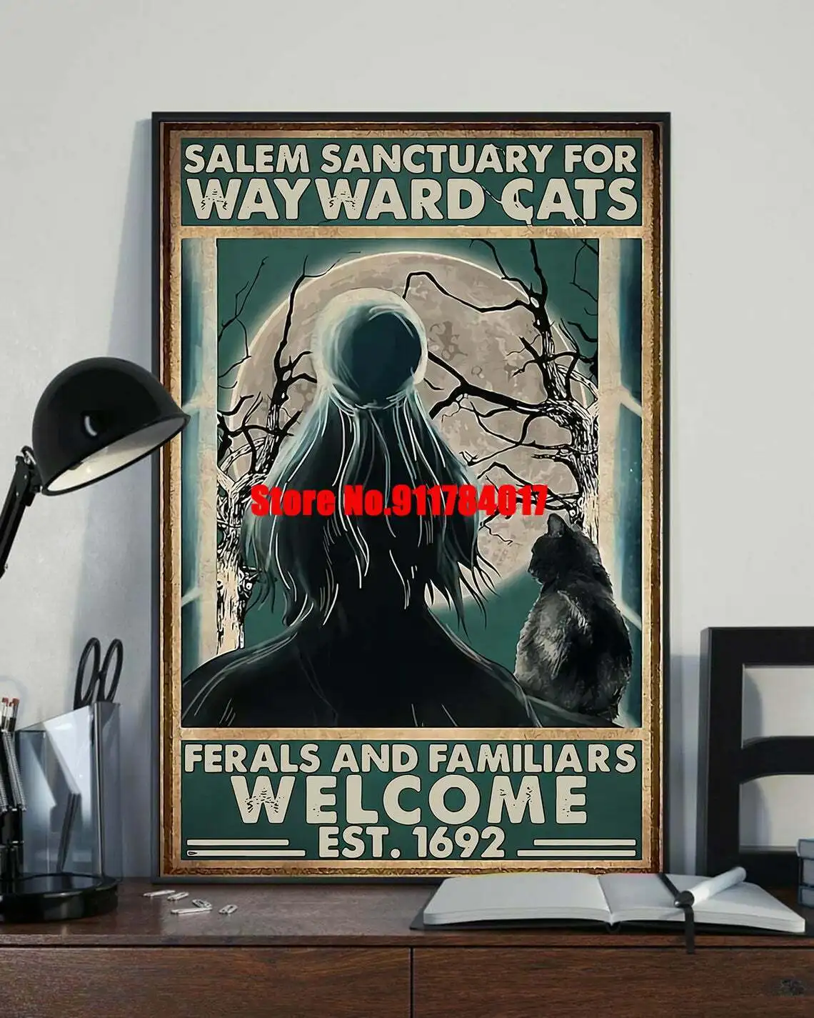 Храм Салема для Wayward кошек, Оловянная табличка для Хэллоуина, ведьма и кот, железная тарелка для бара, клуба, мужская пещера, домашний декор для стен