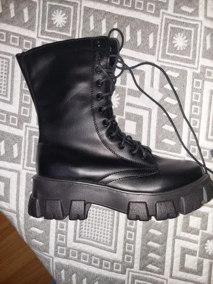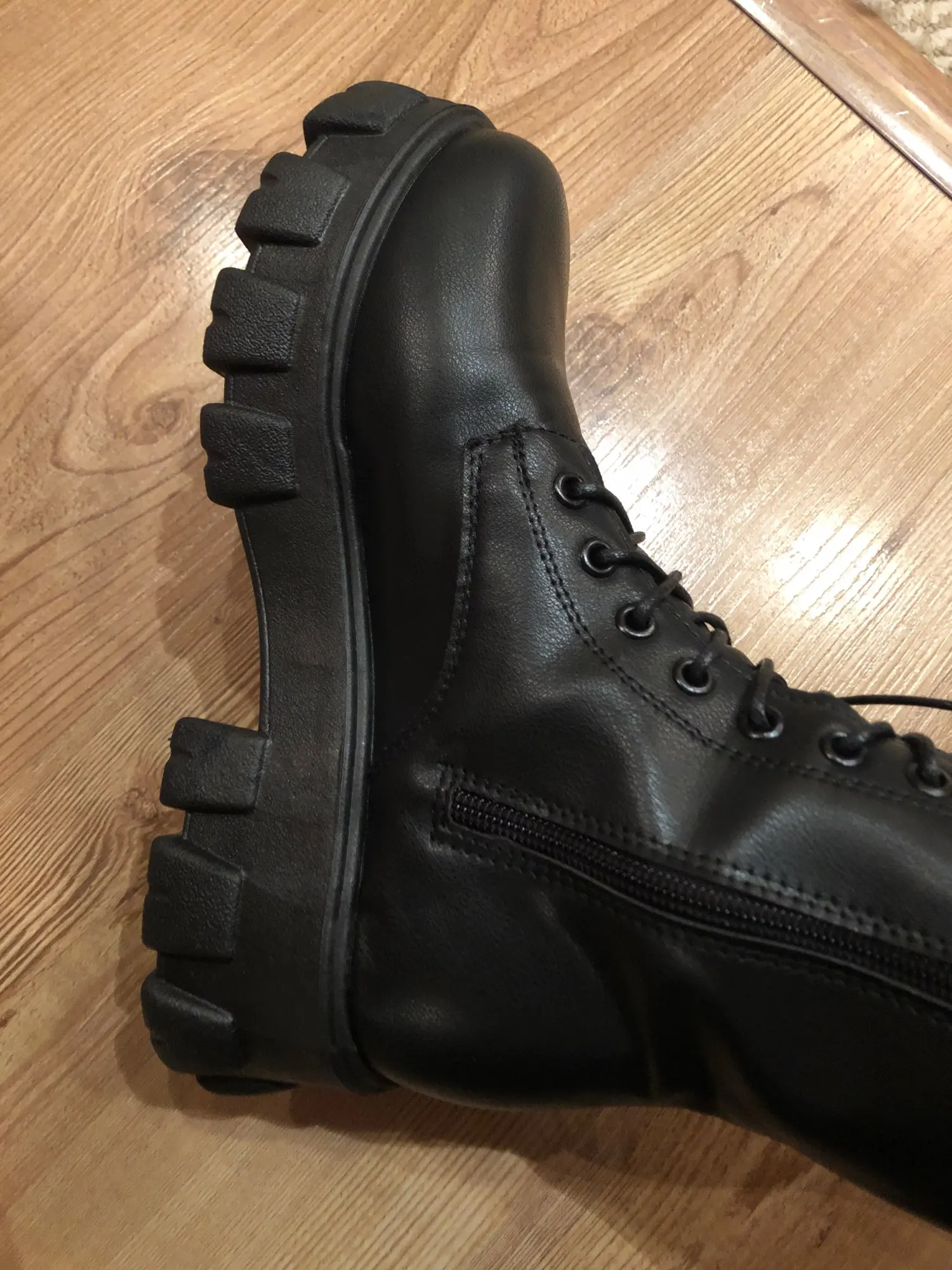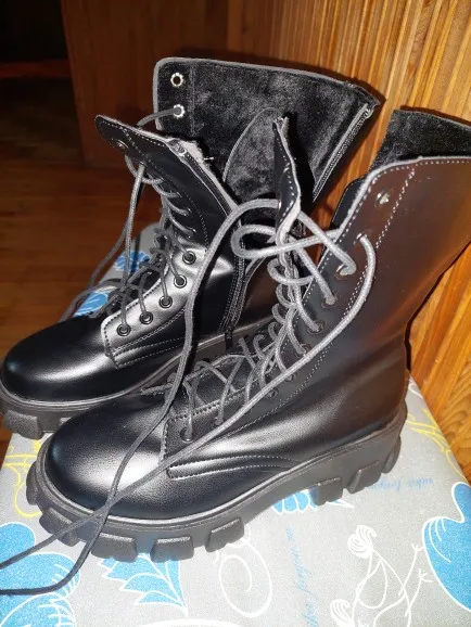Ботинки хорошие, пришли за 23 дня. Всё как в описании, единственное - сзади на подошве надпись , которой не было на фото товара. Но я написала об этом продавцу и мне вернули часть денег, так что общением с продавцом я довольна. Материал тонкий, но тёплый. Заказывала с рассчётом на тёплый носок 40 размер на свой 38, так как маломерят, получилось разницы где-то полразмера. В жизни выглядят очень круто