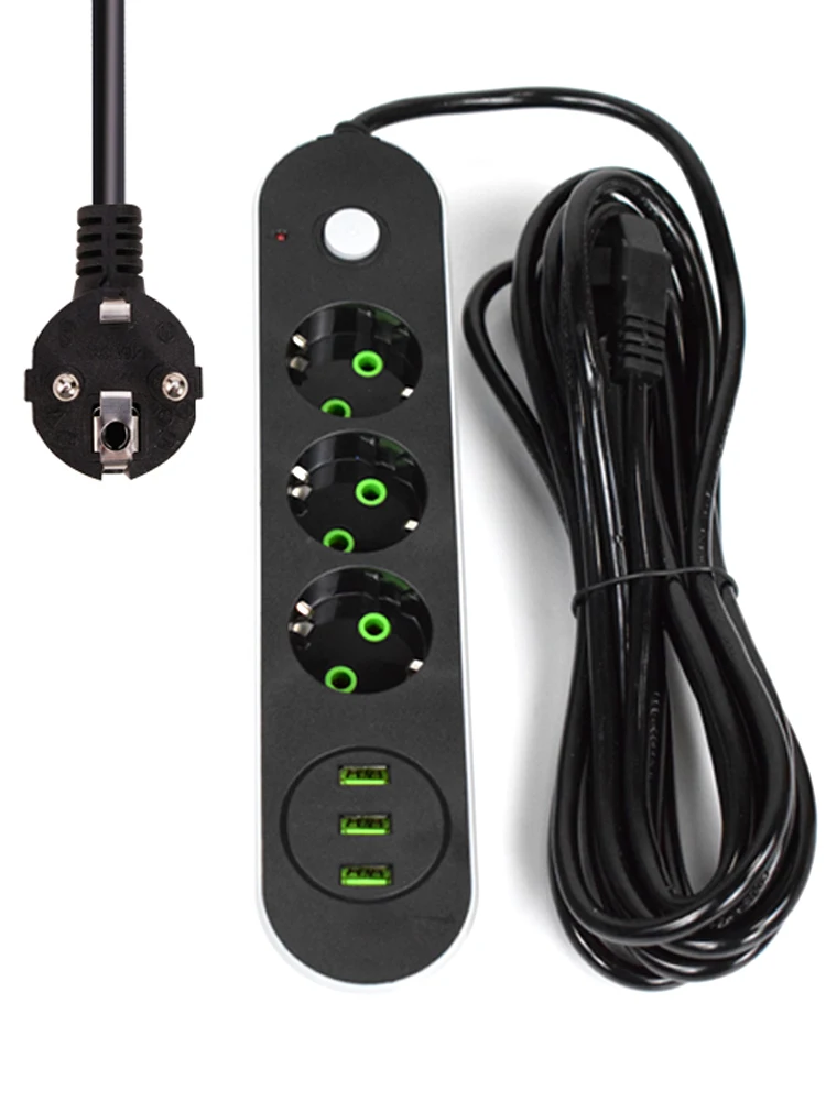 Удлинительный шнур питания с европейской вилкой, 5 м, зарядный шнур с 3 USB-портами, настенный зарядный адаптер, подходит для робота-пылесоса