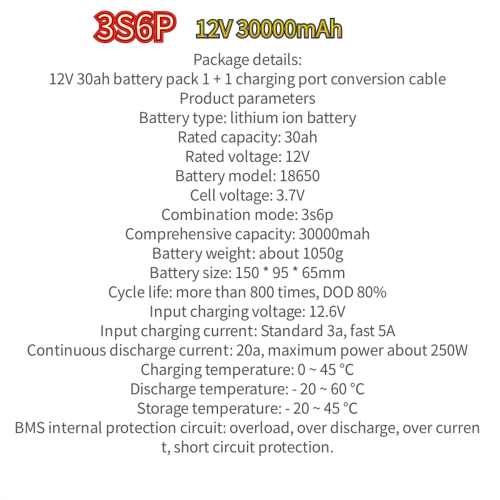 12 В 30 Ач 18650 литиевый аккумулятор 3S6P Встроенный ток 20A BMS д...