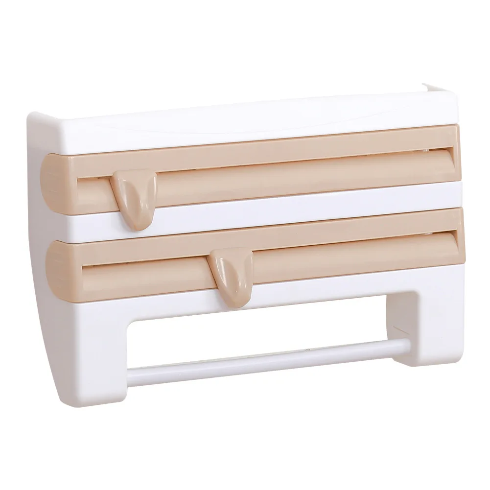 Настенный держатель для бумажных полотенец, домашняя кухонная стойка для бутылок соуса, четырехв-1, режущая стойка для пищевой пленки, многофункциональная стойка для хранения
