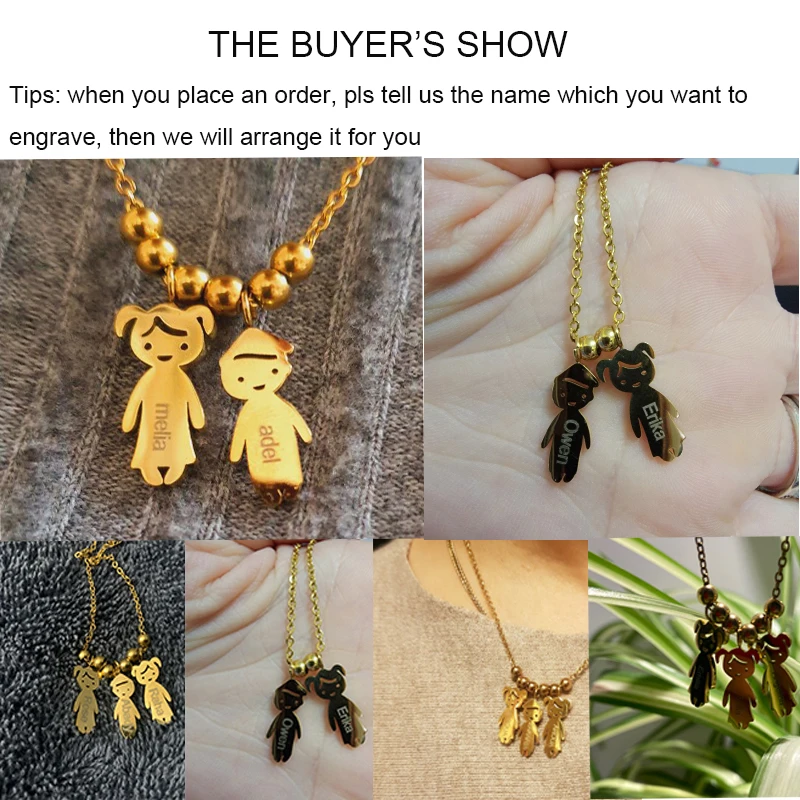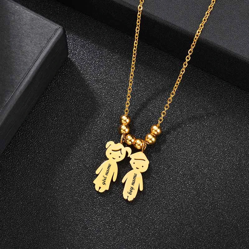 Новинка, детское ожерелье с выгравированным именем, индивидуальное ожерелье из нержавеющей стали с подвеской для мальчиков и девочек, женское ожерелье с бисером для свидания, семья