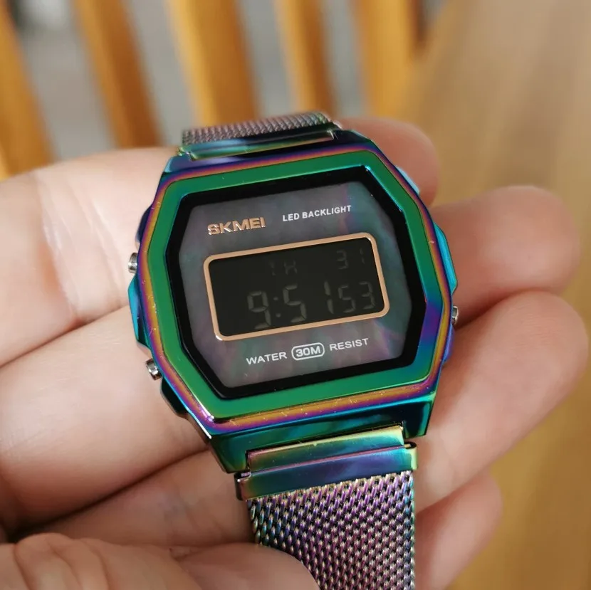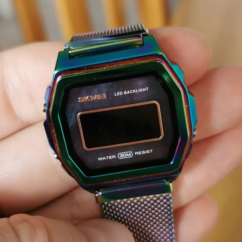 Часы красиво сделаны, цвет холодный, однако, отрицательный дисплей почти неразборчив:/вы можете прочитать время только под определенным углом, в противном случае это просто черное пятно. В конце концов, это не Casio, но я ожидал, что он почти такой же читаемый, как тот, который я принёс раньше для своей девушки. Это не так.