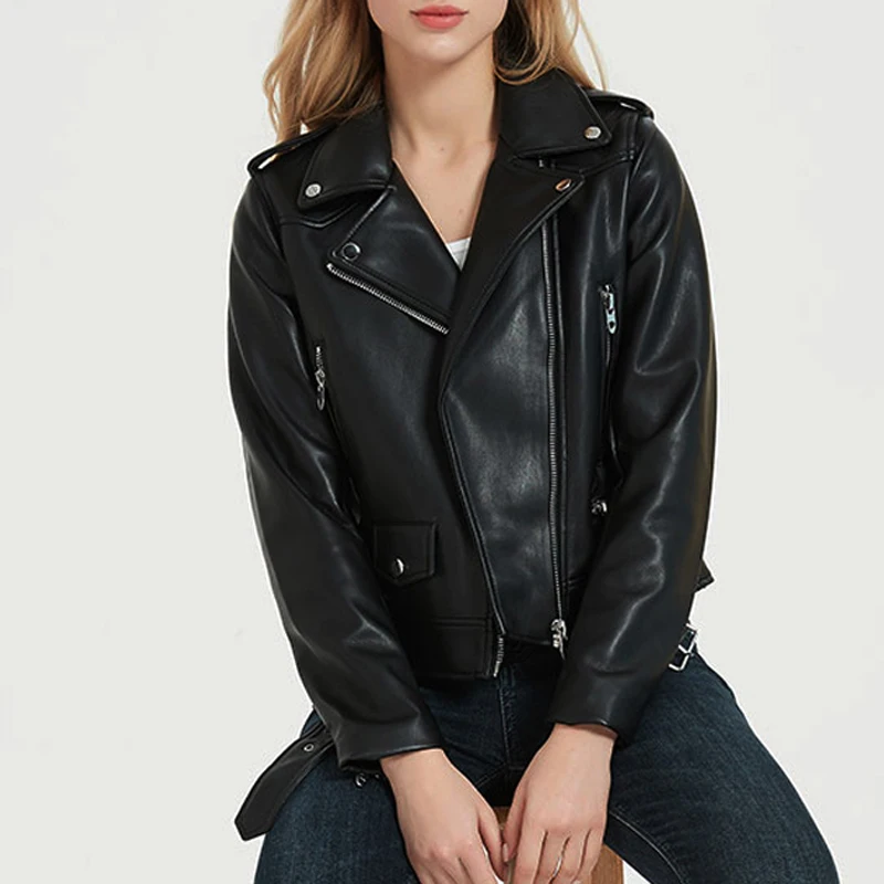 Женская мотоциклетная куртка Aibeautyer, Черная байкерская верхняя одежда из мягкой искусственной кожи на молнии с поясом на весну-осень
