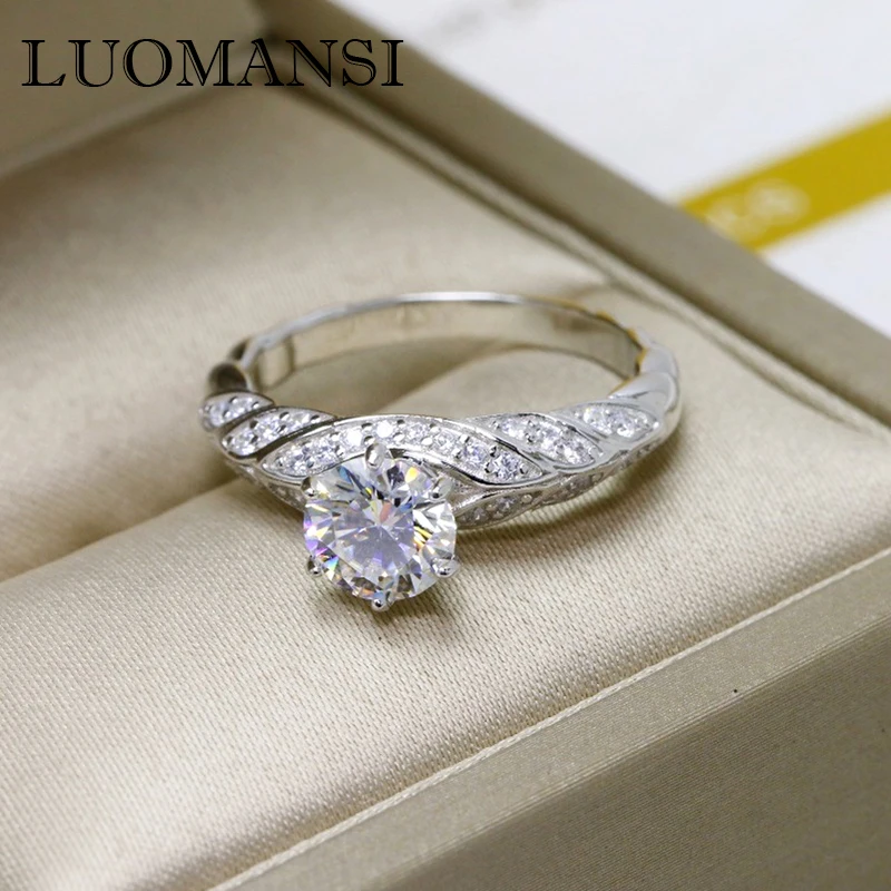Luomansi S925 серебро 1 карат 6,5 мм VVS1 королева колец с муассани...