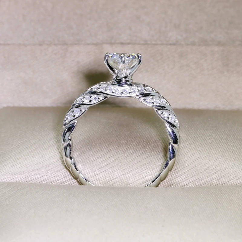 Классическое кольцо из серебра пробы с муассанитом 1CT VVS1 D