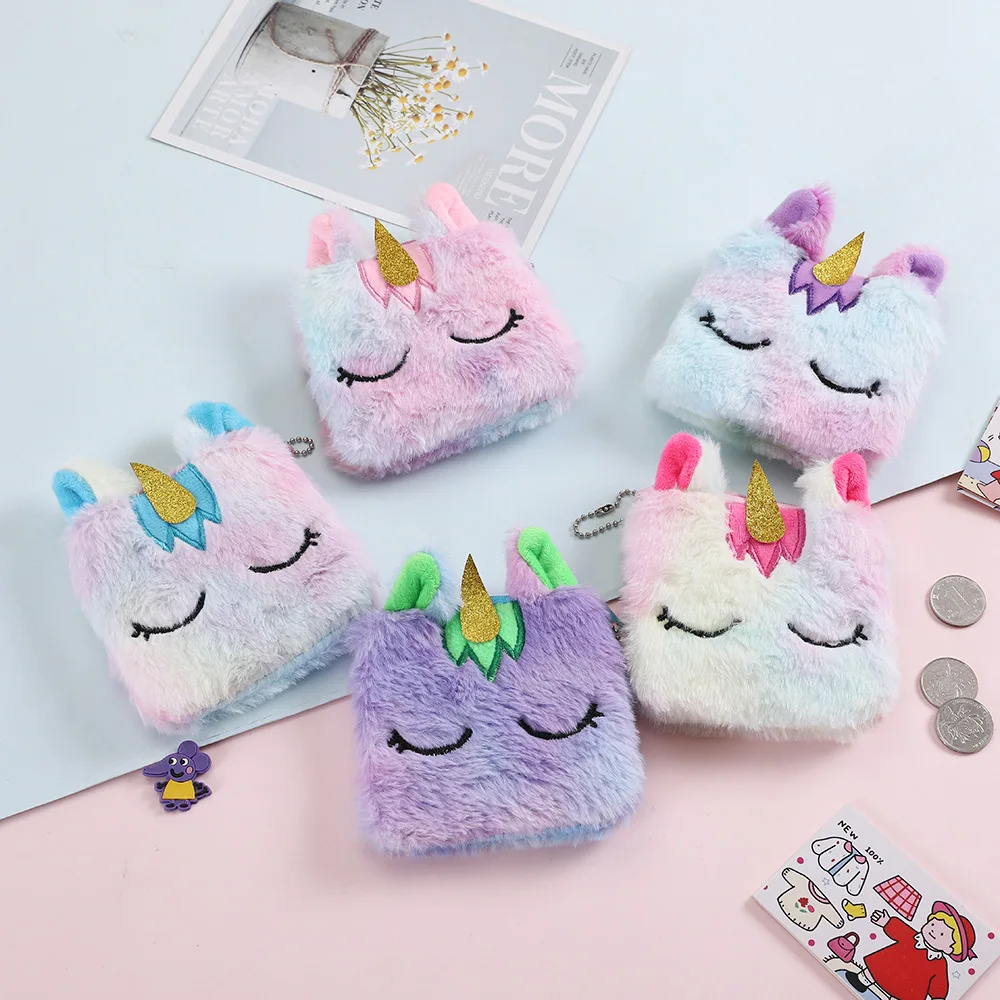 Детская забавная сумка с милым единорогом, поясная сумка для девочек, плюшевые игрушки, нагрудной мешок градиентного цвета, мультяшный кошелек для мелочи, дорожная нагрудная сумка