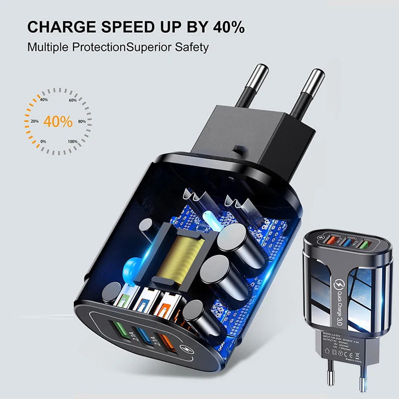 Быстрое зарядное устройство с 3USB-портами, 3,0, универсальное для ...