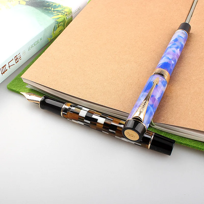 JINHAO M100S целлулоидная перьевая ручка иридий F Перо 0,5 мм чернильная ручка каучуковая офисная ручка для письма офисные принадлежности Подарочный набор