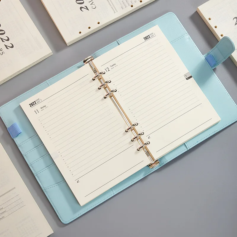 Календарь на английском языке 2022, страница с 6 отверстиями, календарь А5 со свободными листьями, эффективный ручной блокнот, страница, студенческие офисные принадлежности, офисный блокнот