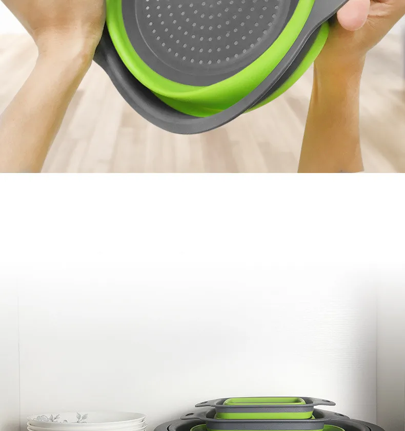Силиконовая складная сливная корзина, складное ситечко для мытья фруктов, овощей, дуршлаг, складная сливная корзина, кухонный инструмент для хранения