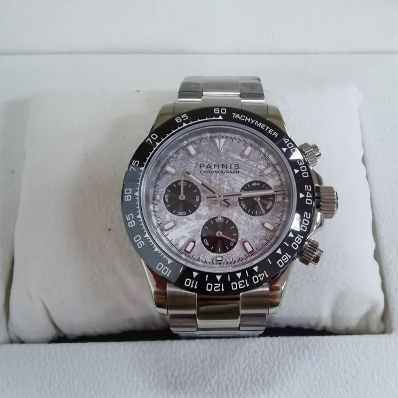 Мужские кварцевые часы с хронографом Parnis, Серебристые часы-хронограф из нержавеющей стали с сапфировым стеклом, японский механизм, мужские часы t 2021 с коробкой в подарок, 39 мм