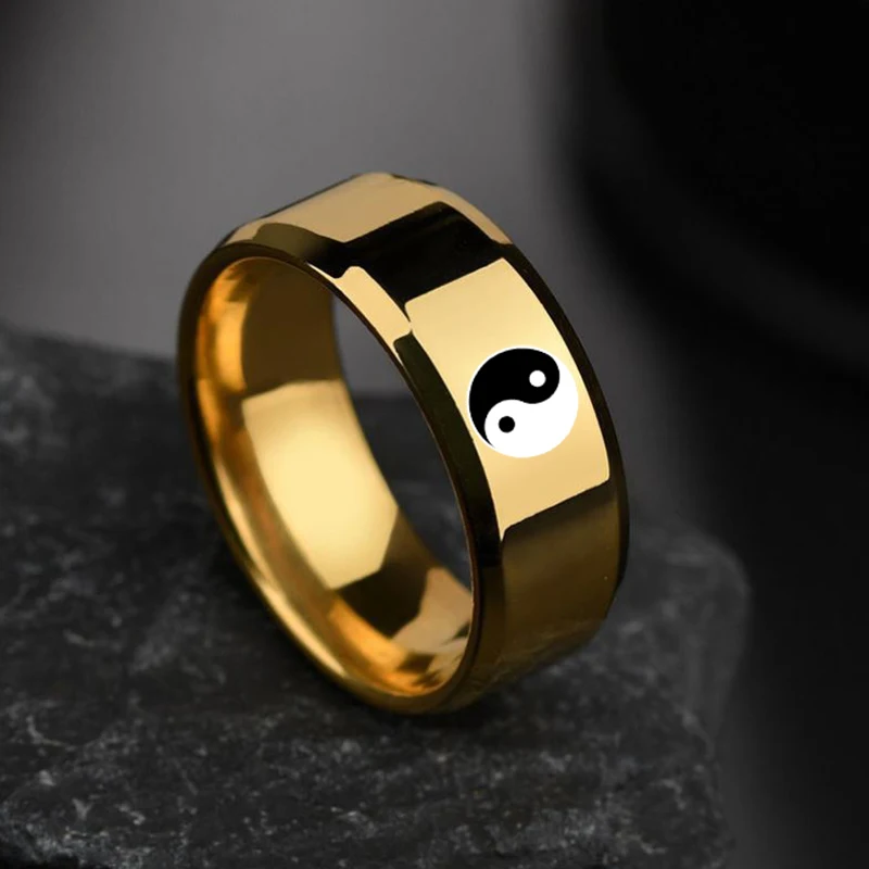 Прямая поставка Модные ювелирные изделия для мужчин и женщин Taoist Bagua Yin Yang Tai Chi мужское кольцо кольца в китайском стиле парные кольца, амулет