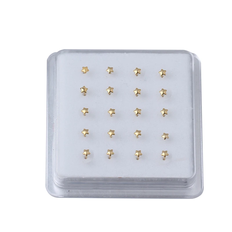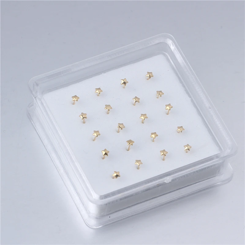 Золотая Звезда Цвет Регулируемая Гибкая Нос Кольца шпильки для Для женщин белого цвета с украшением в виде кристаллов с шариковым носиком и Pin Пирсинг 20 штук