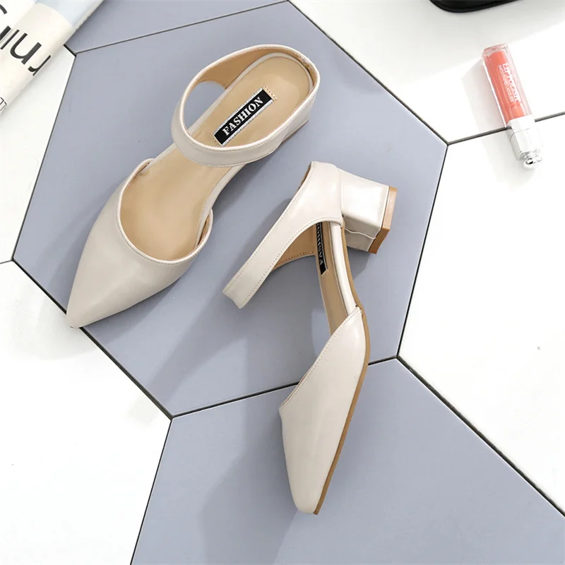 Сандалии женские кожаные на квадратном каблуке, заостренный носок, котята, шлепанцы на массивном каблуке, большие размеры 42
