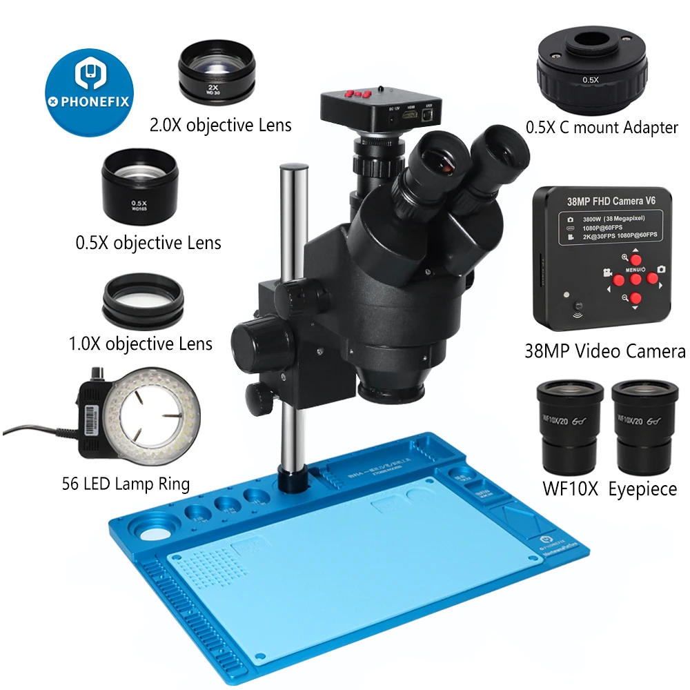 3,5x-90X Simul-Focal Тринокулярный Стерео микроскоп VGA/38MP HDMI-совместимая камера Цифровая микроскопия с подставкой телефон Пайки PCB ремонт