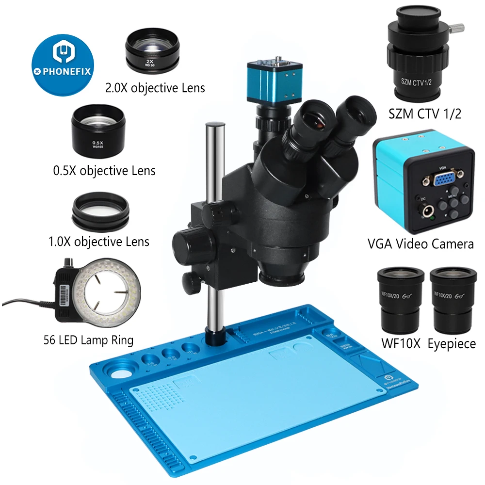 Тринокулярный микроскоп с непрерывным увеличением 3,5x-90X + объектив с алюминиевой прокладкой для ремонта электроники, смартфона