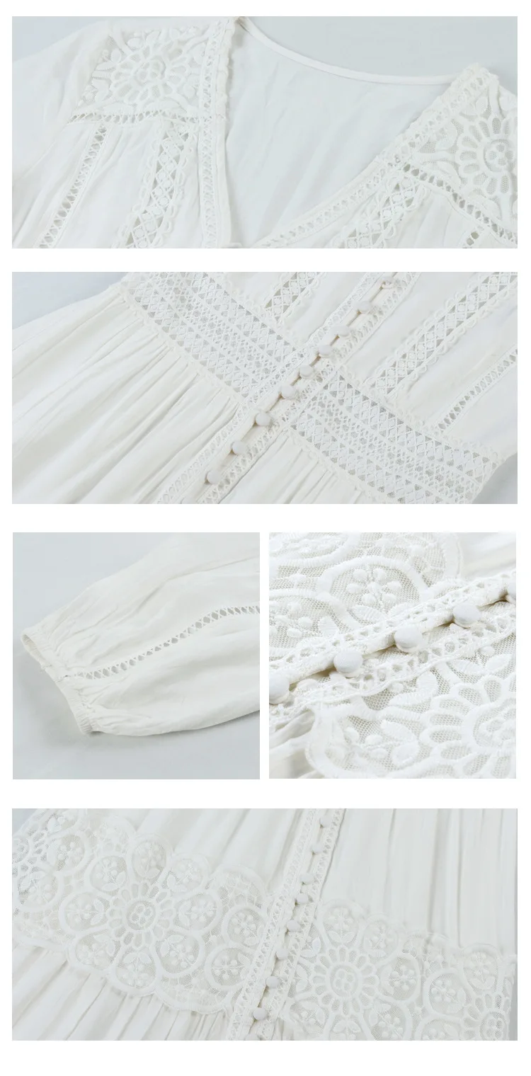 TEELYNN и рукавами-фонариками одежда для детей кружевные длинные платья для женщин в винтажном стиле; Белые V образным вырезом Осень бохо платье вечерние праздничные платья