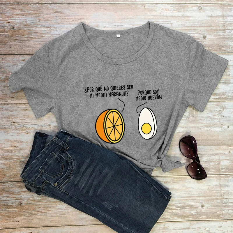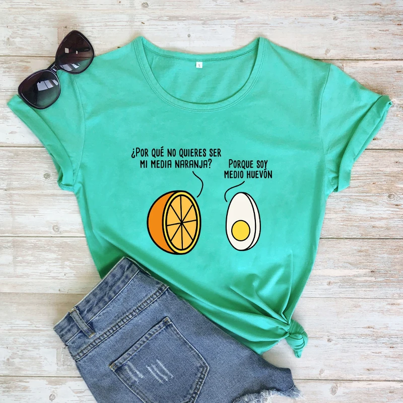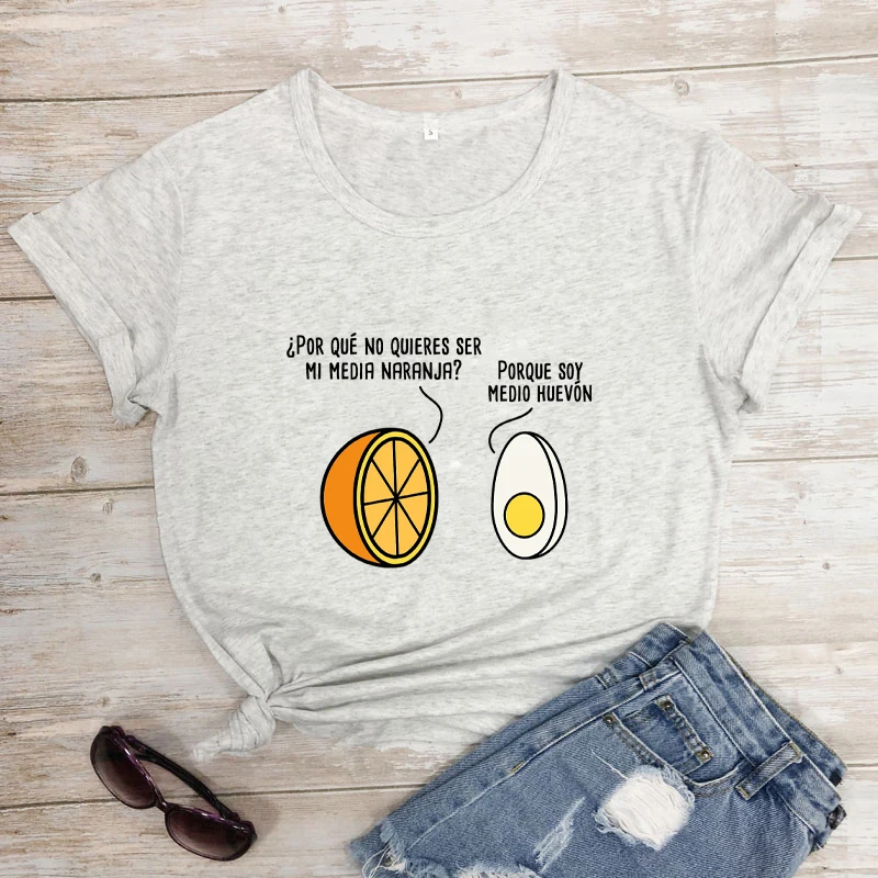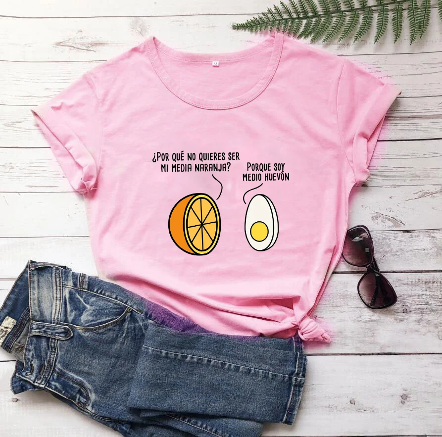Диалога между оранжевым и яйцо испанская футболка PORQUE соевый MEDIO HUEVON рубашка для женщин модные повседневные шорты Мода эстетику