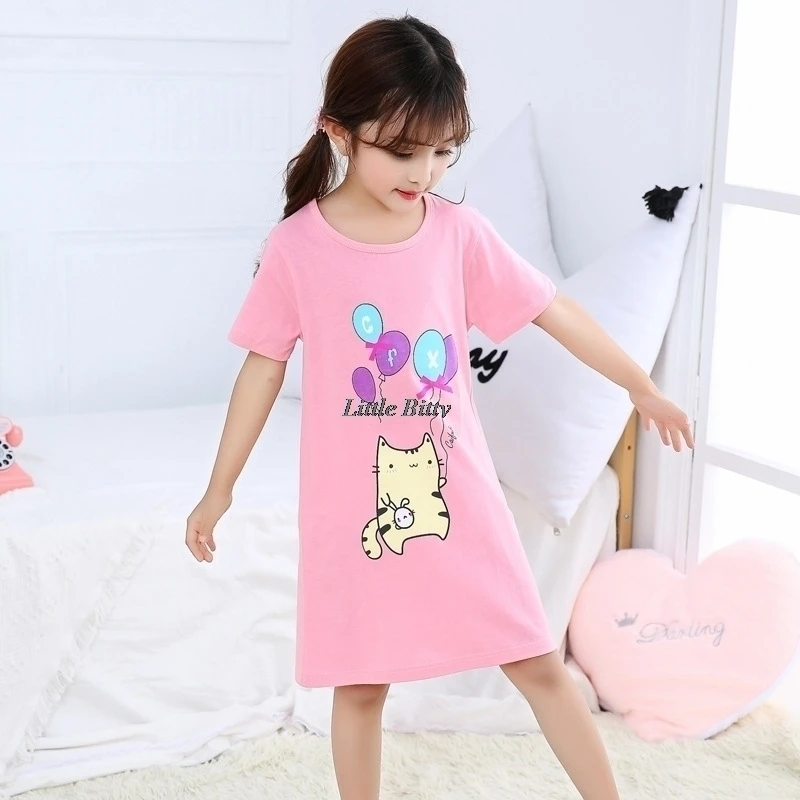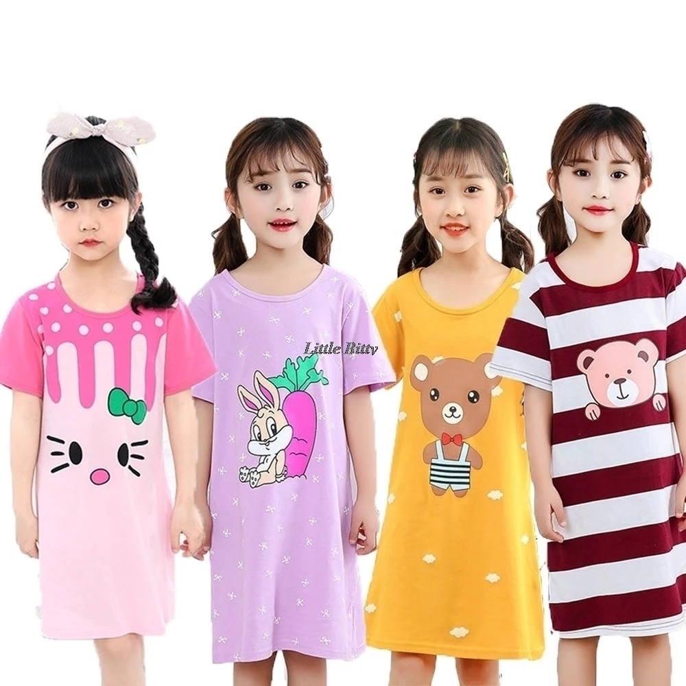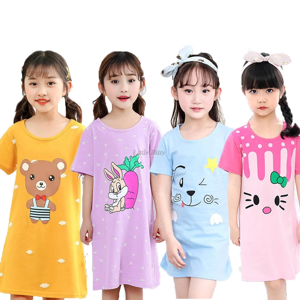 Летняя короткая Пижама с животными, мультяшное платье, Детская ночная рубашка для девочек от 2 до 14 лет, ночная рубашка, одежда для сна для детей