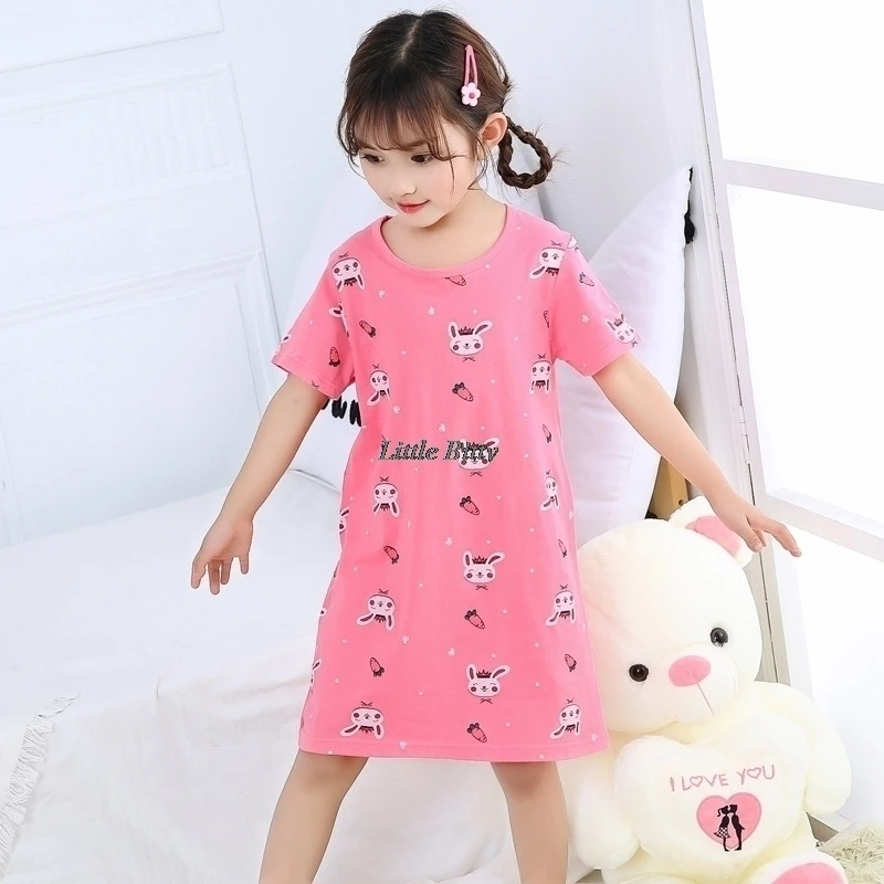 Летняя ночная рубашка для девочек, детские пижамы, хлопковые ночные...