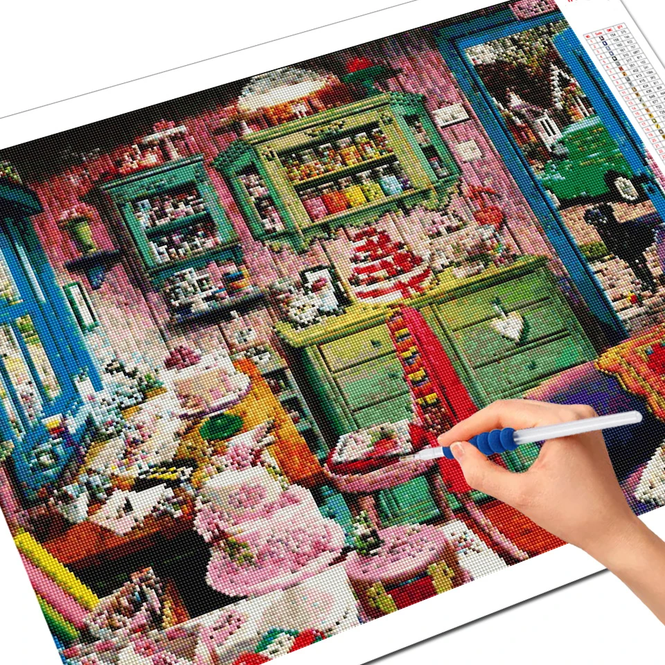 В нашем магазине в качестве сырья используется круглый бриллиант из смолы. Сочетание этих стилей сделает картину более элегантной по текстуре с сияющей яркостью. По сравнению с традиционной смоляной росписью, наши работы имеют более сильное чувство стереофографа и роскоши, прекрасно выраженные в новом стиле смолы алмаза, стоя за ваш элегантный вкус для украшения дома!