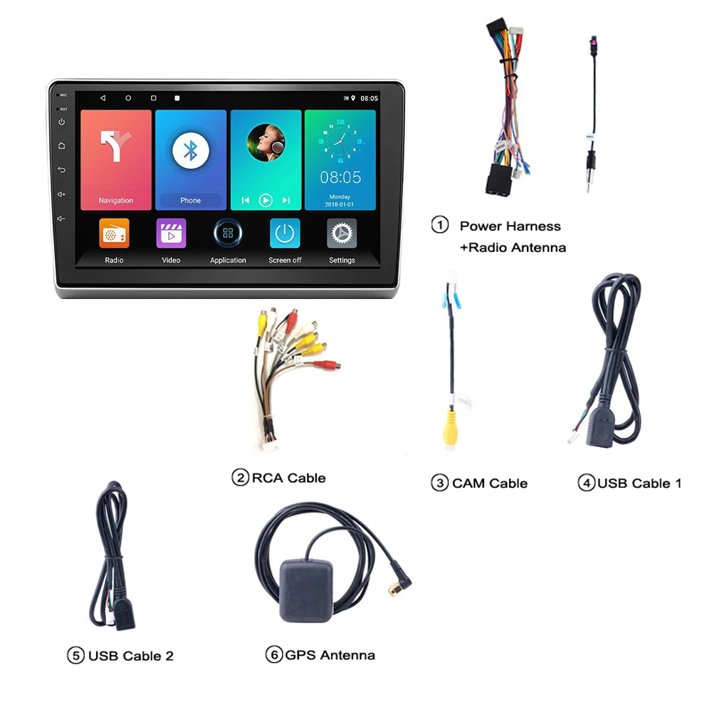 1 х Автомобильный MP5 плеер1 х Кабель питания1 x Антенна GPS1 x вход камеры1 х RCA вход и выход2 x USB кабельРуководство по эксплуатации-1 шт.