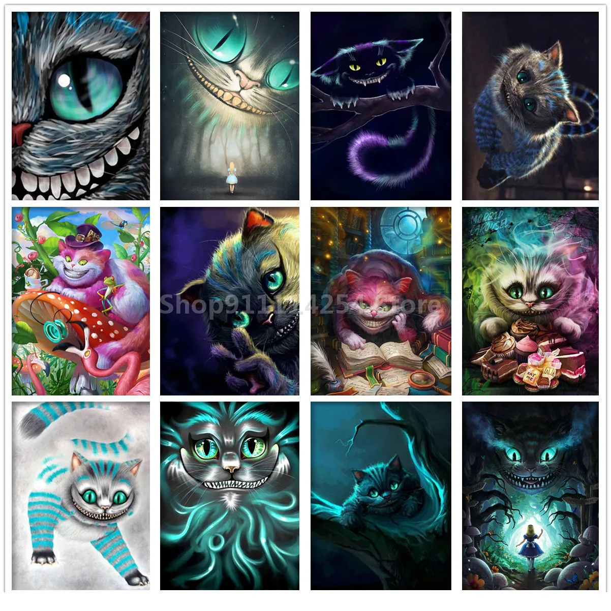 Алмазная живопись 5D сделай сам, квадратная вышивка из страз Алиса в стране чудес, Любовь Чеширского Кота, вышивка крестиком, подарок
