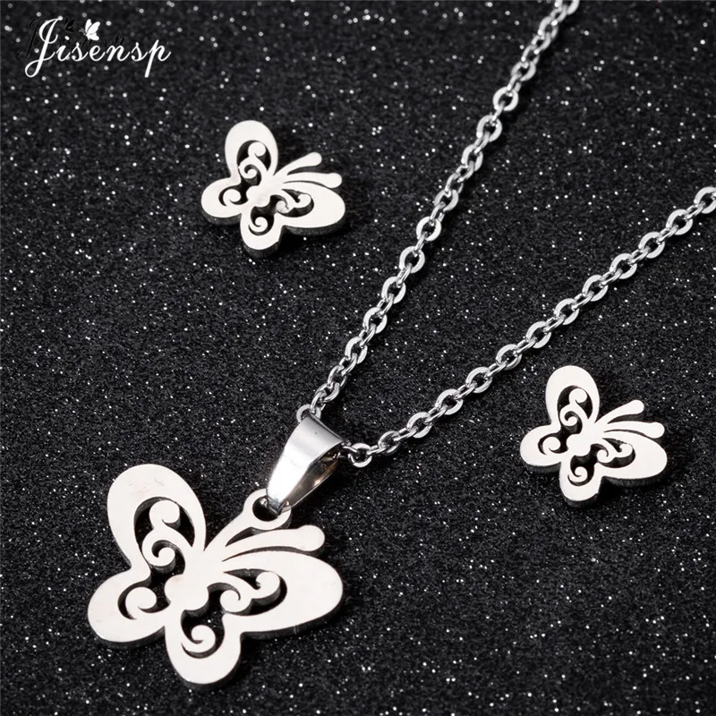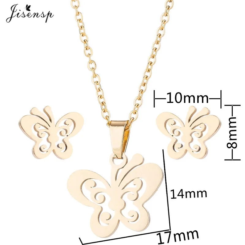 Золотая Бабочка из нержавеющей стали ожерелье серьги для женщин многослойное украшение на шею из нержавеющей стали Jewery комплекты для девочек на день рождения колье Femme
