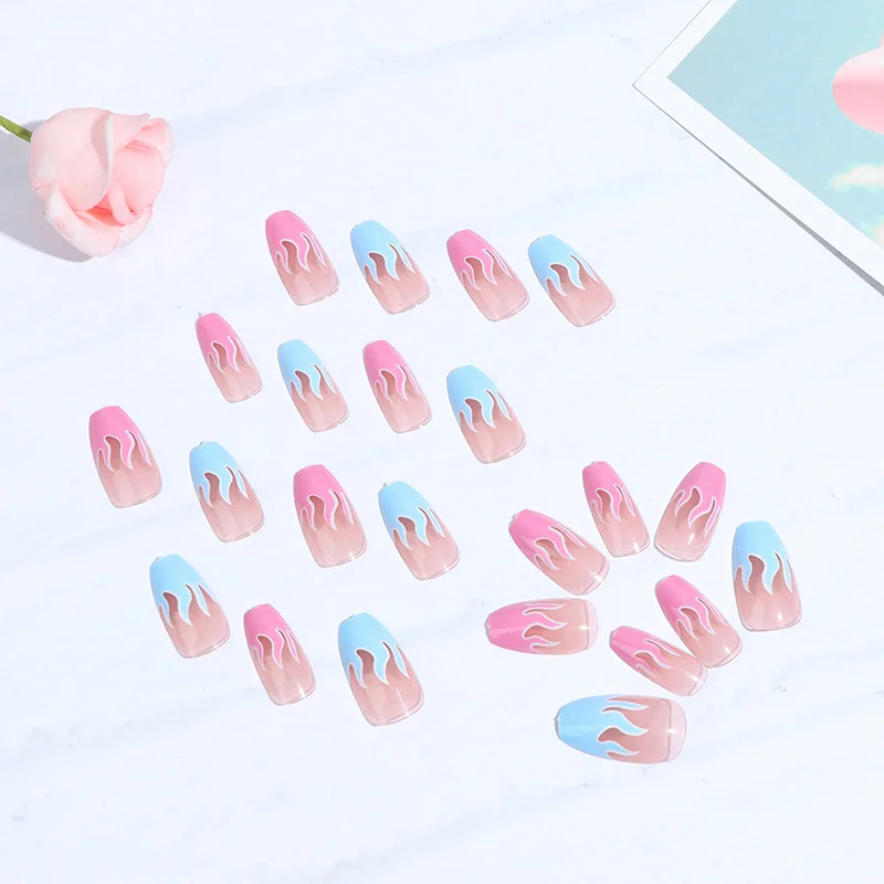 2021 новый европейский квадратный пламенный дизайн поддельные ногти Синий Фиолетовый Огонь Полное покрытие накладные ногти искусственные наклейки для ногтей