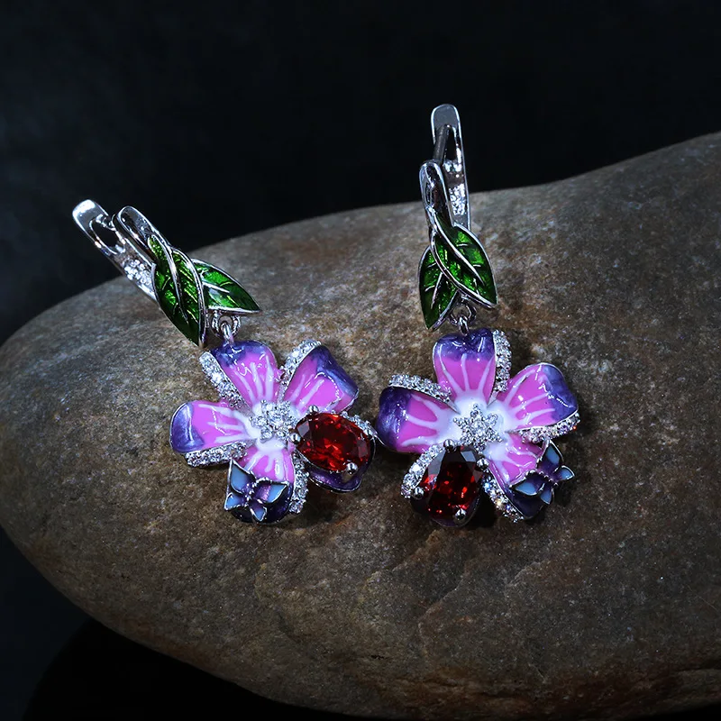 Женские серьги-бабочки, с эмалью, с цирконом, 2021