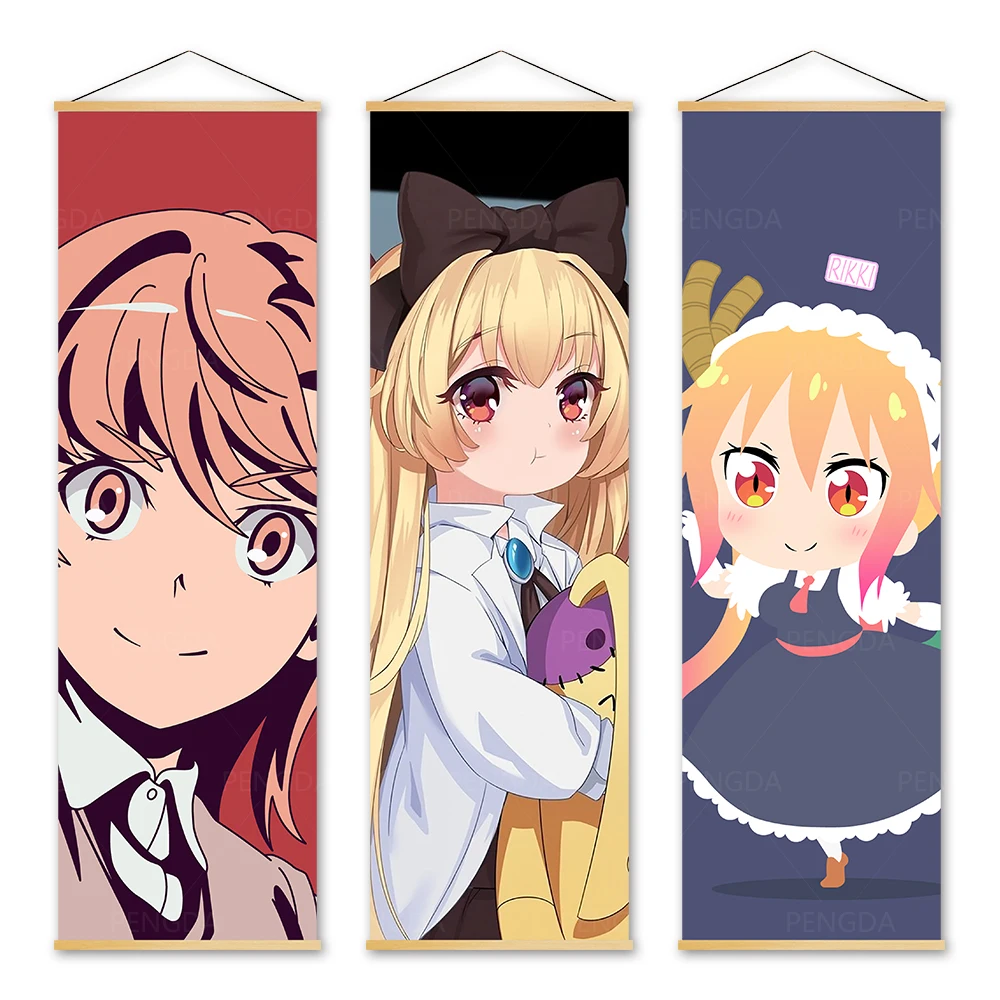 Холст домашний декор мисс Кобаяси Дракон горничная Настенная картина из массива дерева висячие свитки печать Аниме современная картина плакат