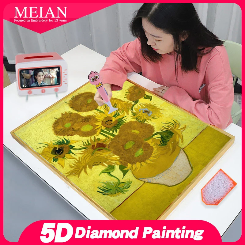 Картина 5D "Подсолнухи" Meian Ван Гога, Набор для вышивки крестом, квадратная абстрактная мозаика, картина для стразы, Декор