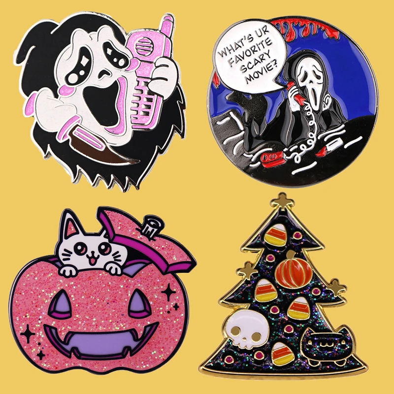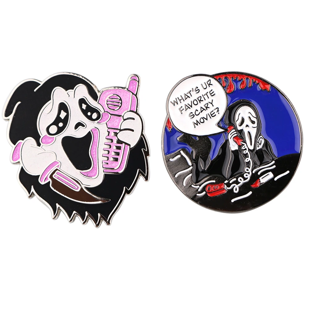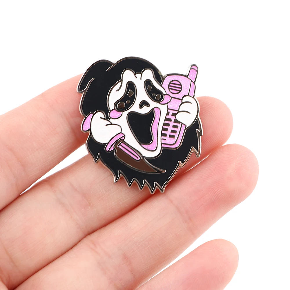 SP1509 крик убийца черный призрак брошь, эмалированный штифт из фильма ужасов Готический значок на булавке; Детский костюм на Хеллоуин, подарок, ювелирное изделие
